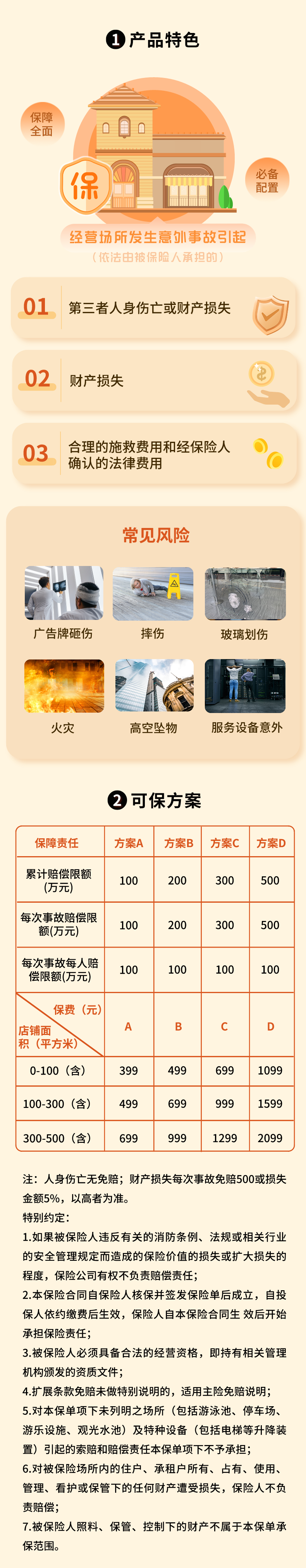 A:该公众责任险产品适用经营面积在500平方米及以内的珠宝零售门店。