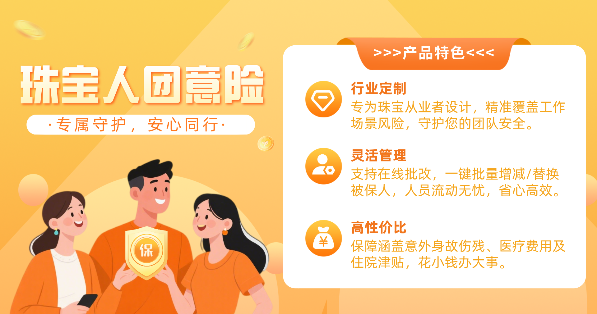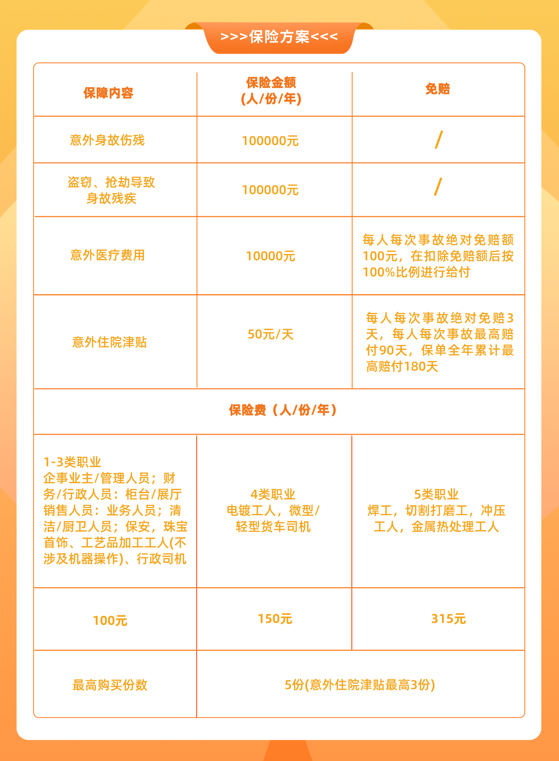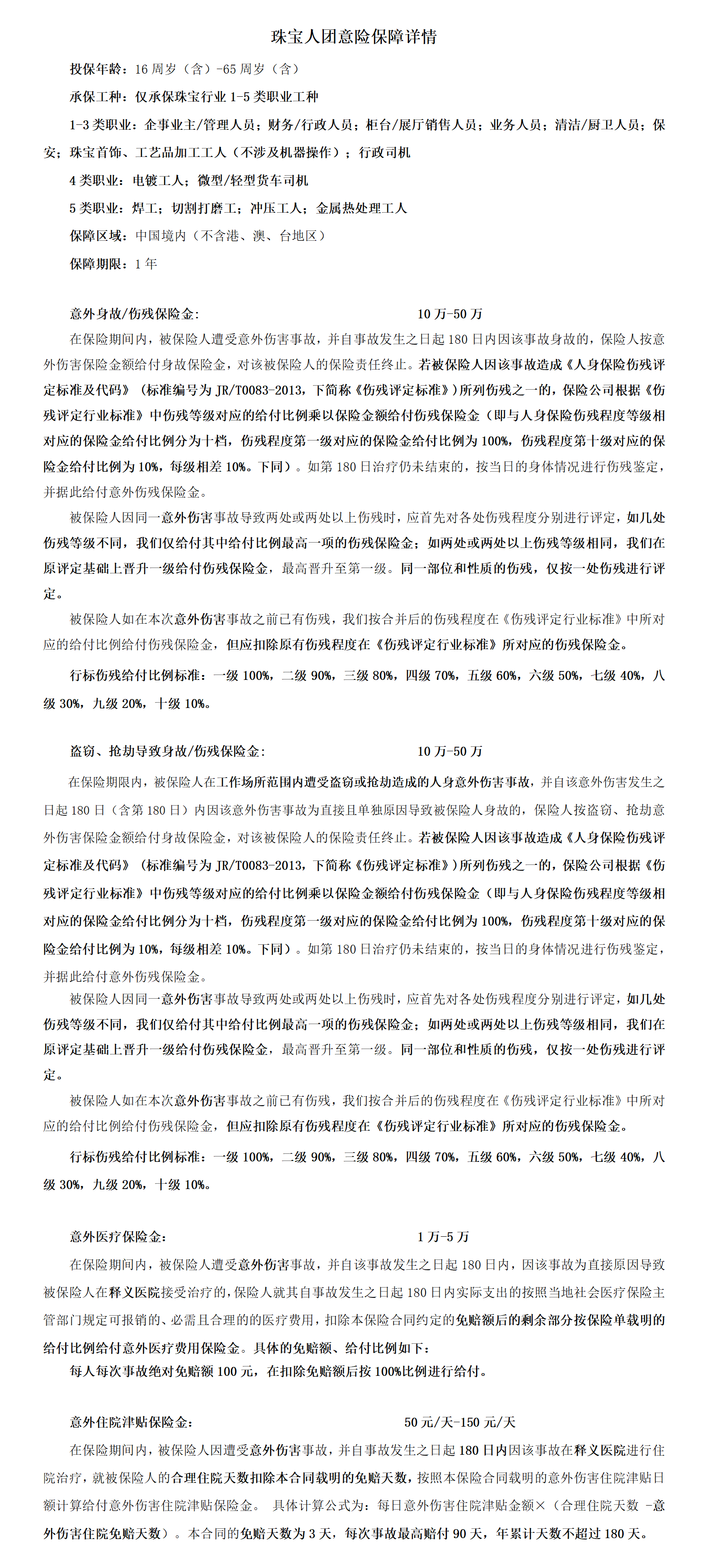 产品简述:保险期间,员工因意外导致的伤残,身故,医疗费用等