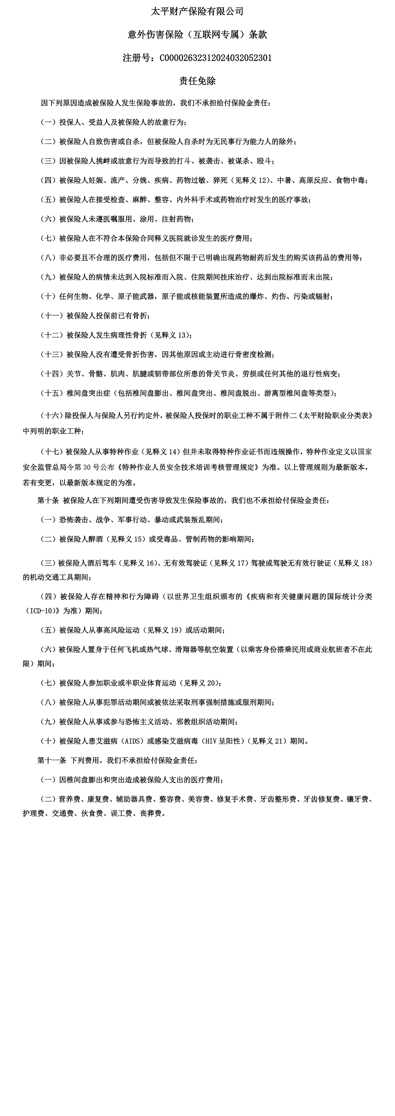 保障详情 投保须知及声明 投保重要提示 保险条款 责任免除 理赔须知